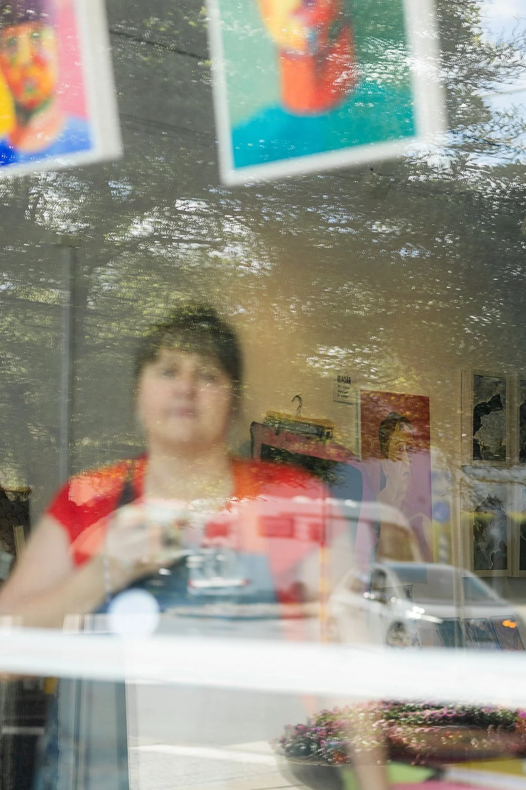 När jag fick barn hann jag inte in till stan lika ofta till den kontorsplats jag hade där, så jag bestämde mig för att leta efter något närmare hemma. Och hittade den här lokalen. Det var faktiskt ett galleri när jag tog över, men jag använde lokalen främst till kontor från början. Jag flyttade också med alla mina färger och papper för att kunna måla här.